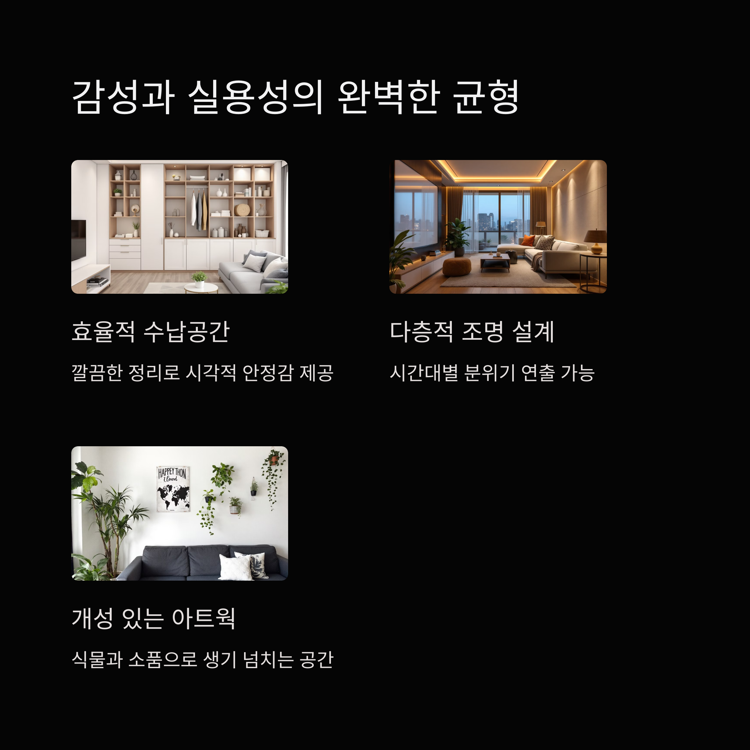 | 성공 포인트 | 라이프스타일 기반 설계, 조화로운 색상, 유연한 가구배치 |