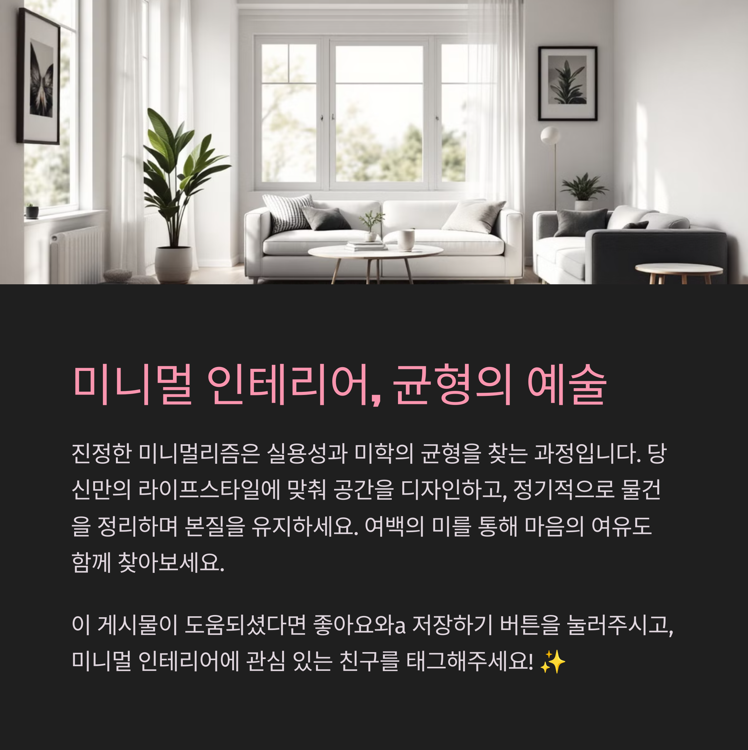 미니멀은 적게 꾸미는 게 아니라 덜어내며 더 중요한 것을 남기는 과정입니다. 실수를 줄이고 나에게 맞는 균형을 찾으면 공간도 삶도 훨씬 편안해져요. 지금 내 집이 너무 비어 보인다면, 놓치고 있는 미니멀의 온기를 다시 채워보세요.