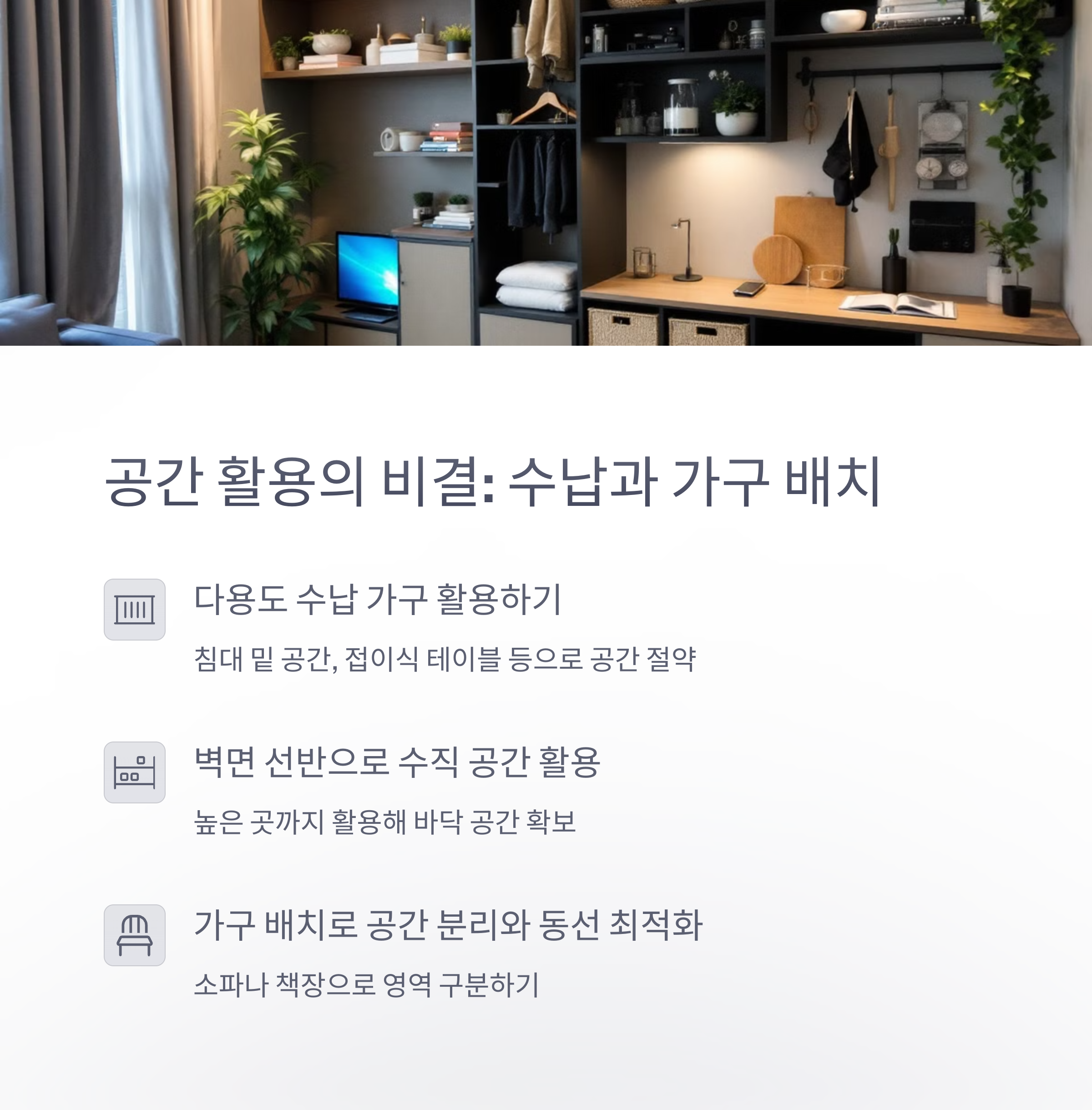 좁은 공간도 넓어 보이게 만드는 수납 아이디어 | 무드등과 스탠드를 활용한 분위기 연출 팁 | 직접 꾸미는 재미와 취향 반영의 만족감 |
