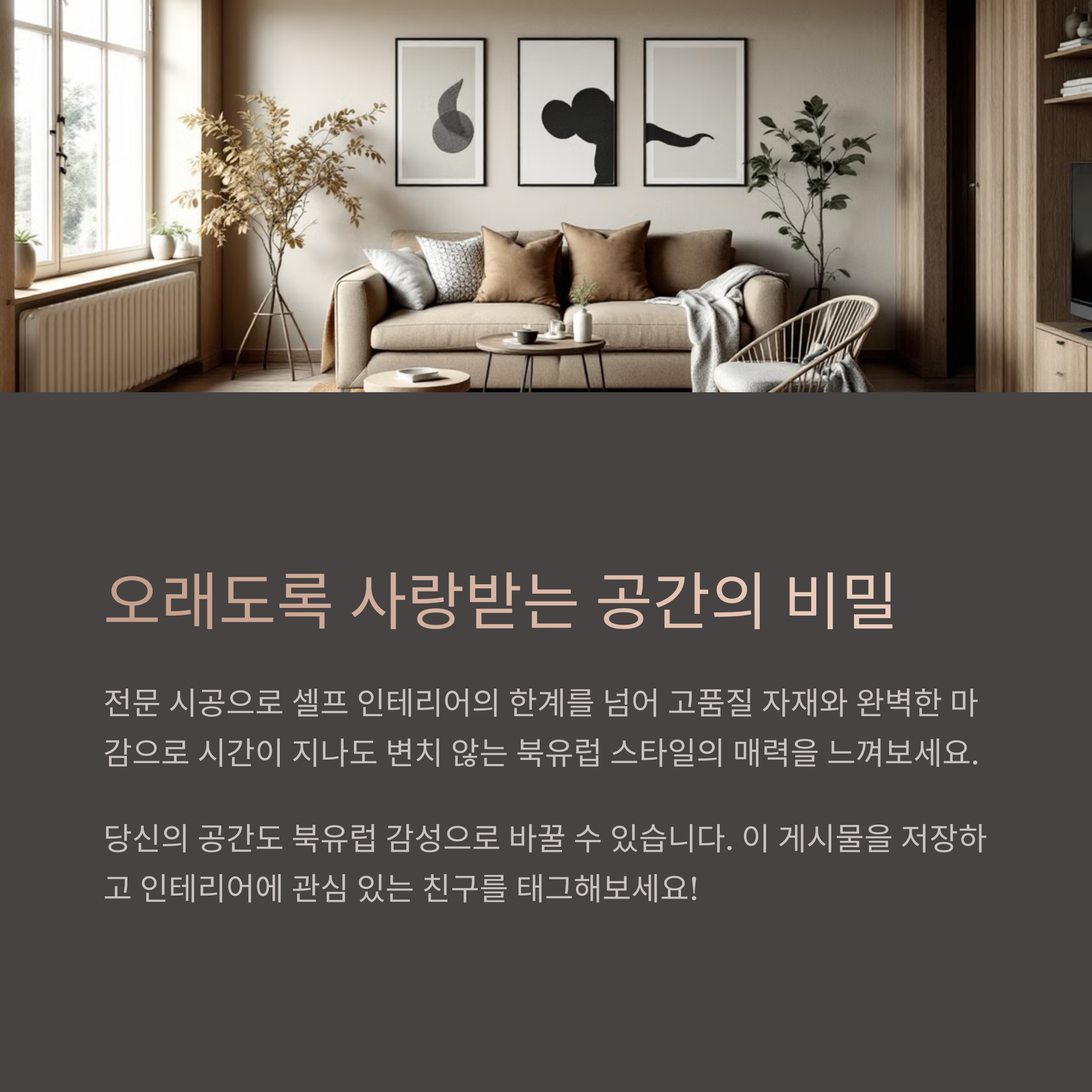 북유럽 인테리어에 대한 궁금한 점이나 시공 팁이 필요하다면 댓글로 편하게 남겨주세요. 서로의 경험을 공유하며 더 나은 공간을 함께 만들어 갈 수 있습니다.