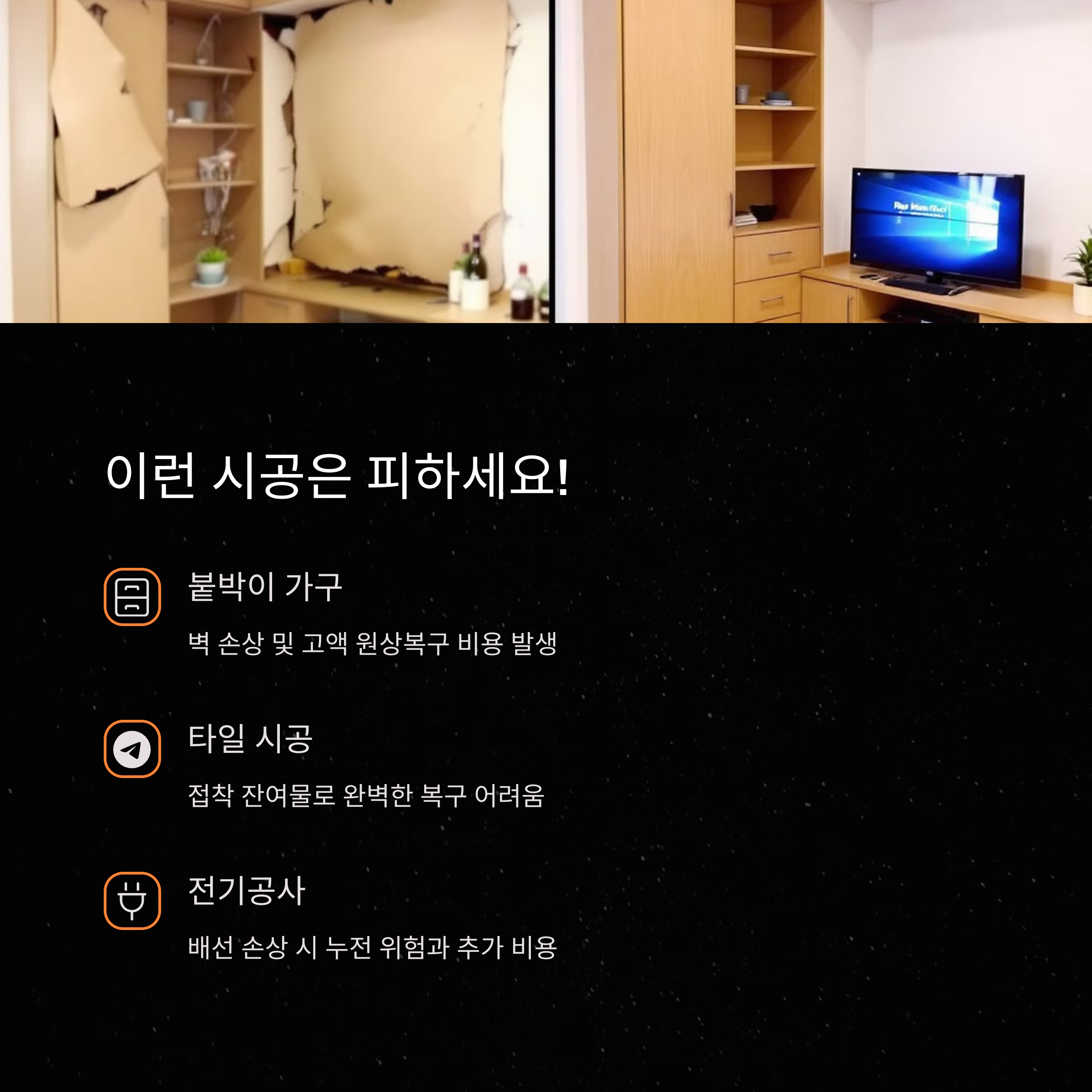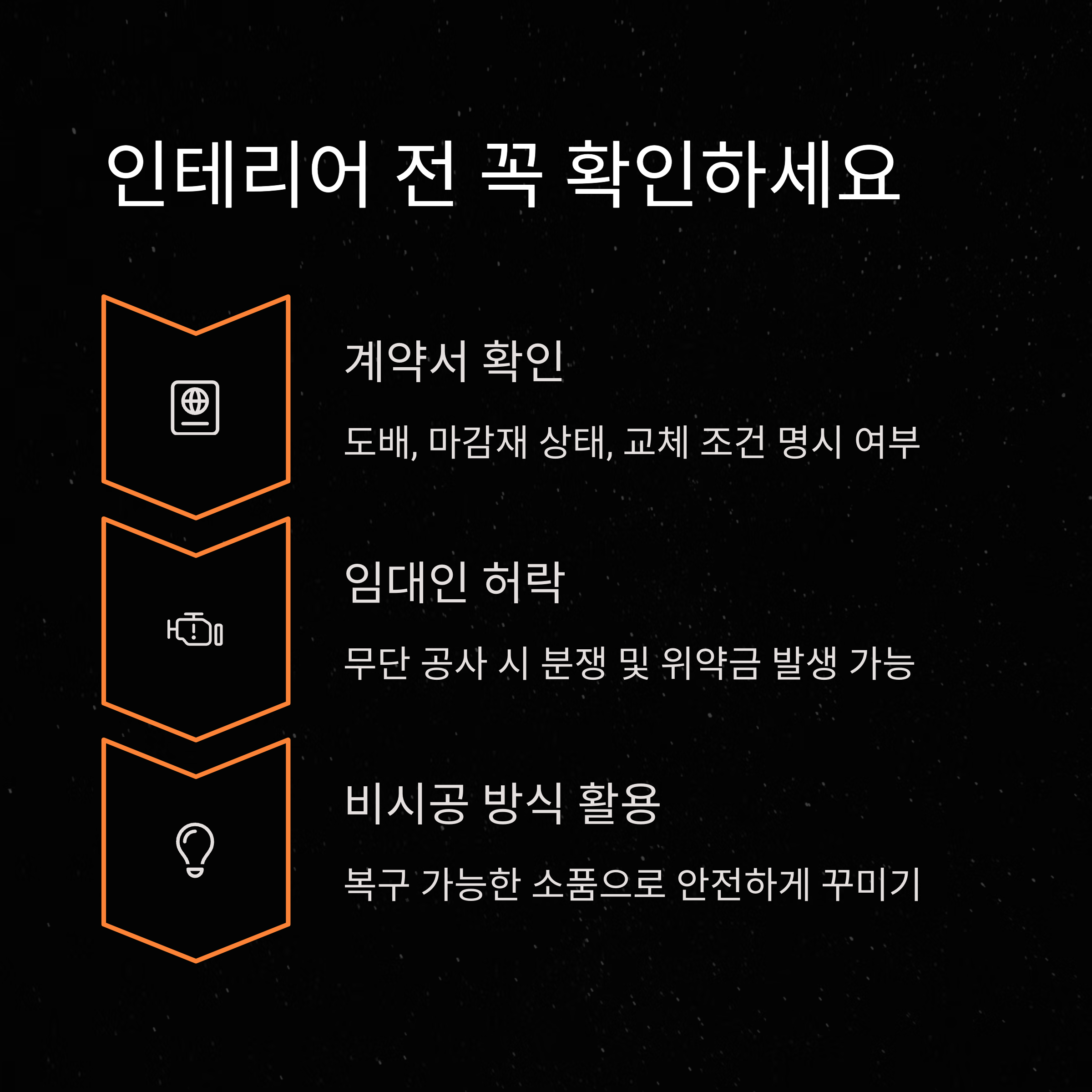 | 전세주의사항 | 비시공인테리어 | 원상복구 |